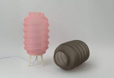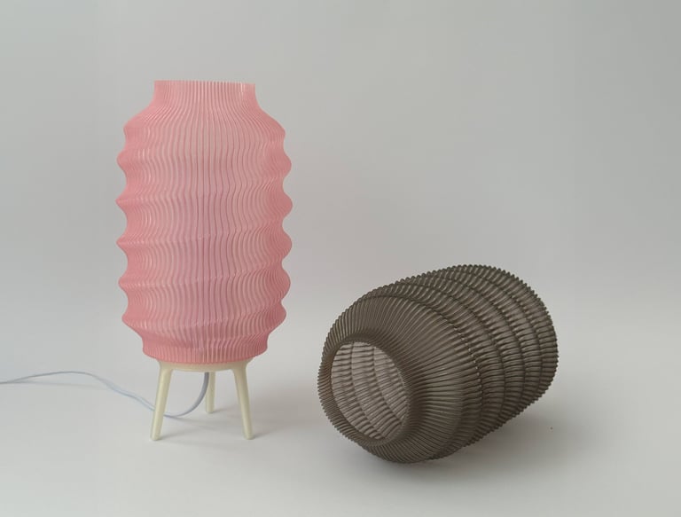 The lamp’s form was born from a desire to combine modern minimalism with the warmth of handcrafted objects. By using 3D printing, every curve and proportion could be precisely shaped while still reflecting an organic, flowing character. The slender legs lift the shade in a way that feels almost weightless, inspired by mid-century elegance but reinterpreted with contemporary materials and technology.
